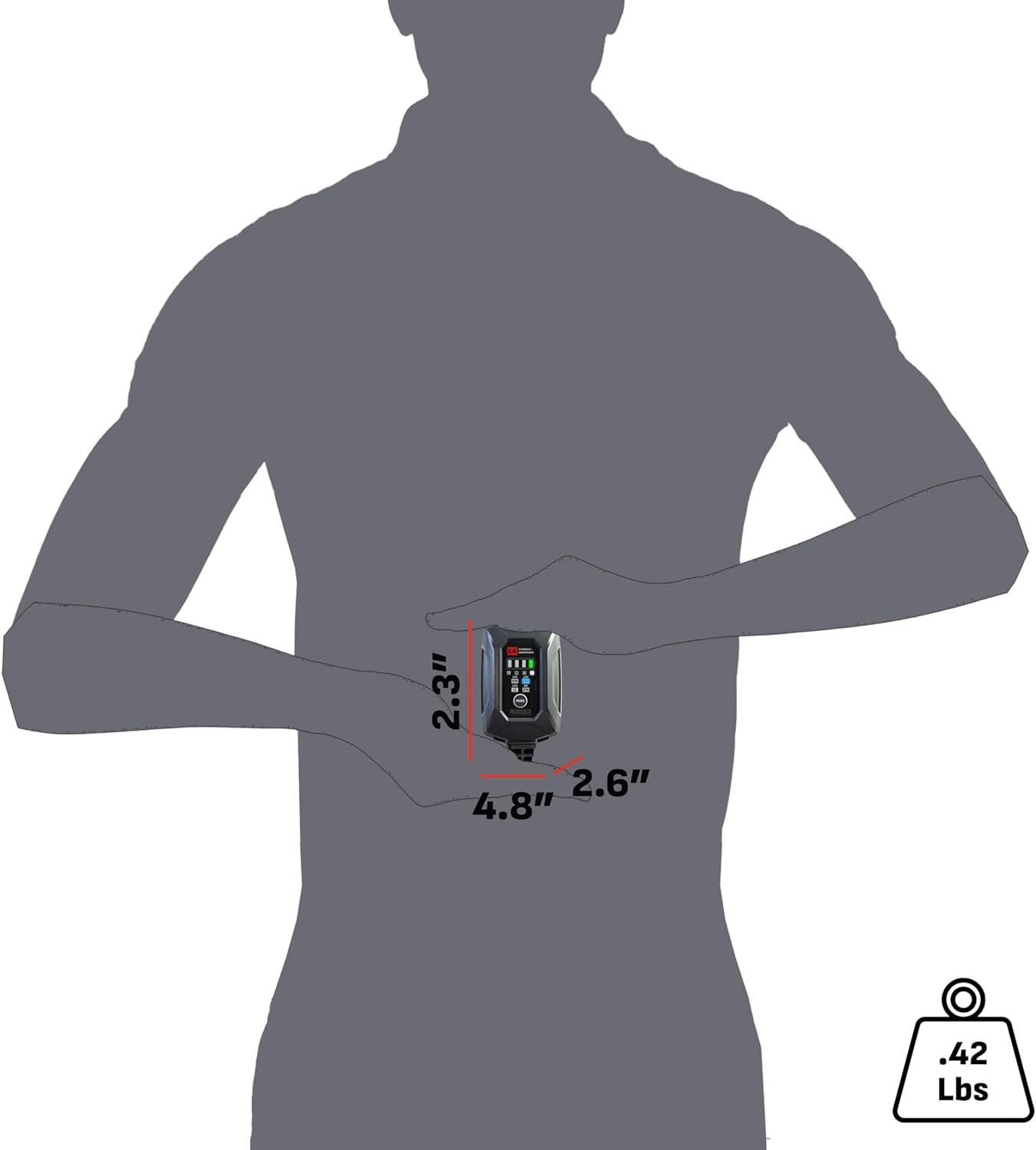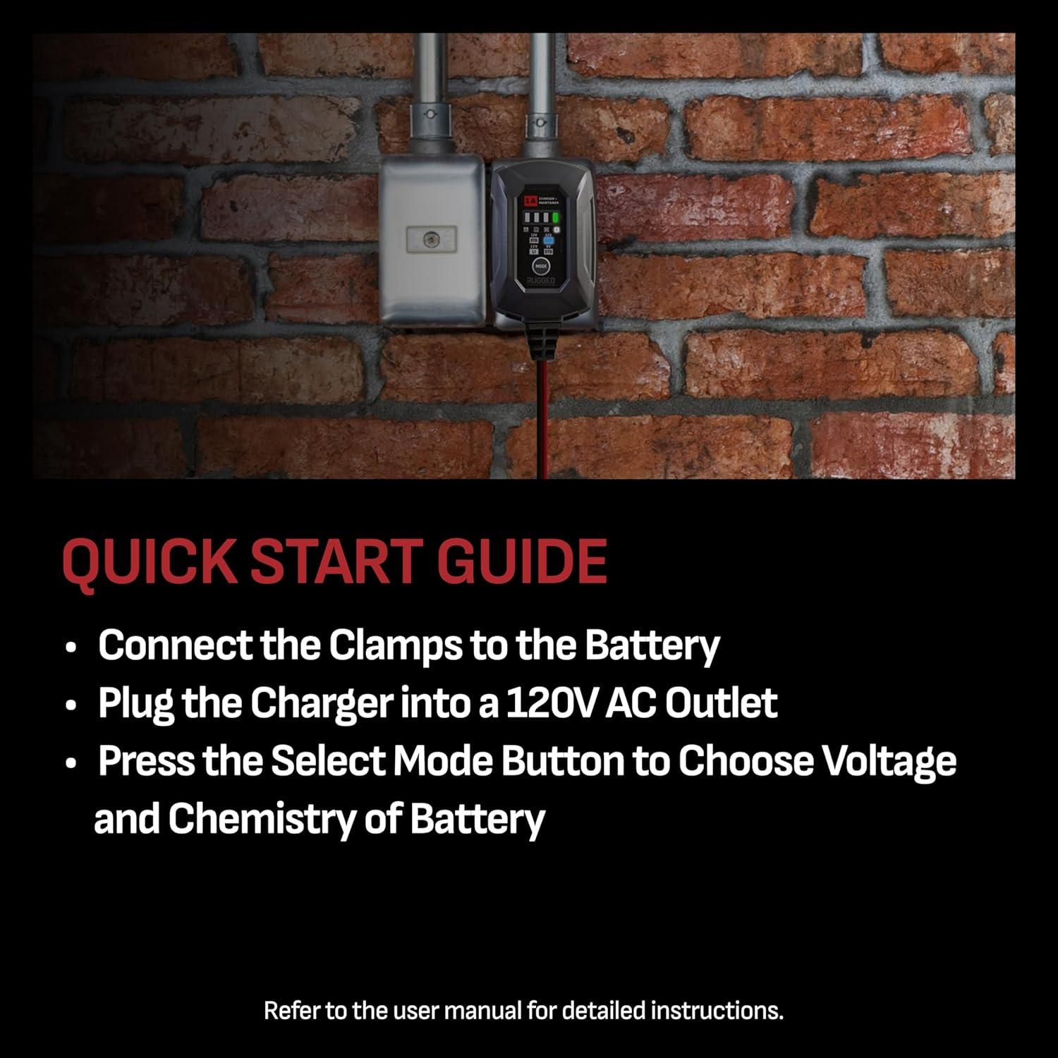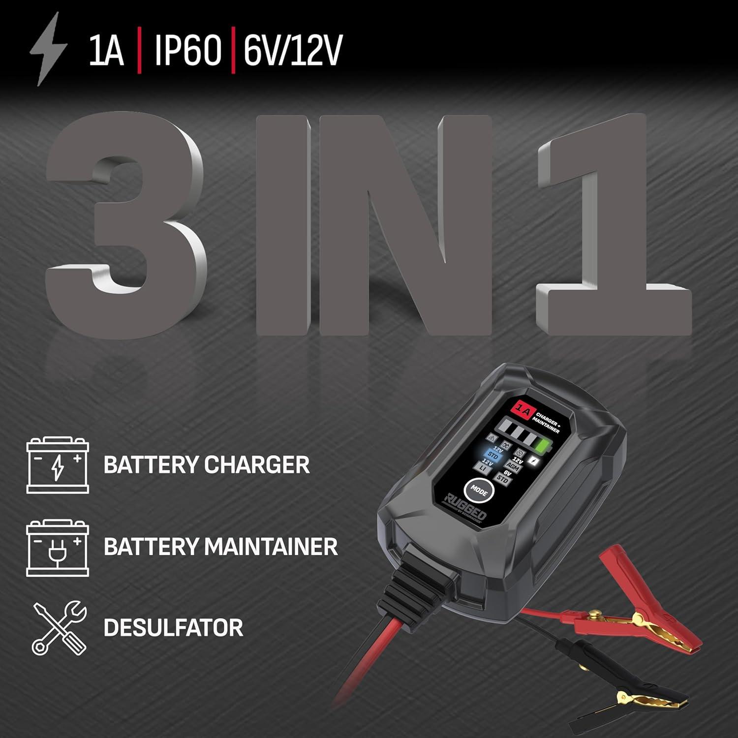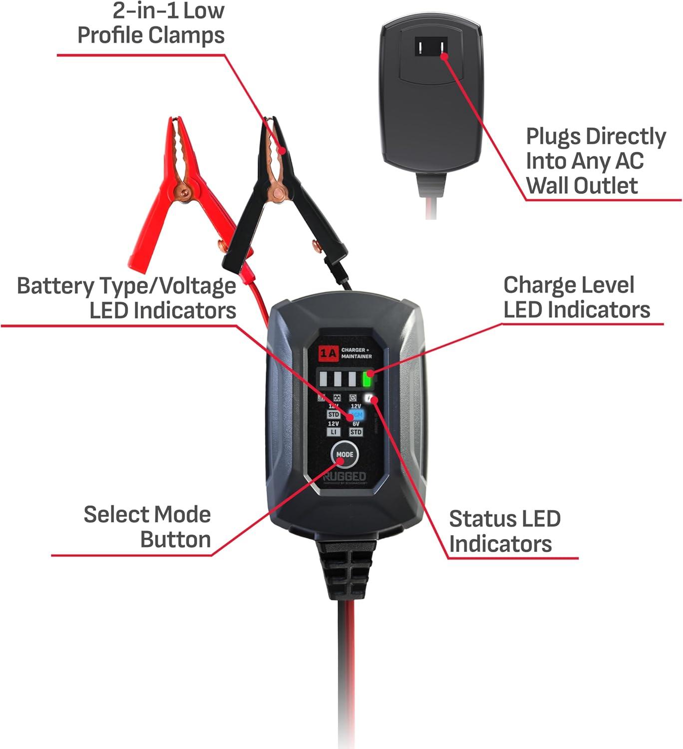 Unleash unstoppable power and total confidence every time with the cutting-edge RUGGED BY SCHUMACHER SC1677 automotive battery charger and maintainer. Specially crafted for car owners, outdoor adventurers, and anyone who needs reliable battery support, this 3-in-1 battery charger, tender, and reconditioner is engineered to deliver maximum power and versatility. With compatibility for 6-volt and 12-volt batteries—including advanced lithium (LiFePO4), standard, AGM, wet cell, gel, deep-cycle, enhanced flooded, maintenance-free, and calcium types—the SC1677 offers a microprocessor-controlled charging and a trickle charge and maintenance mode to keep batteries in peak health, whether vehicles are in use or in storage.