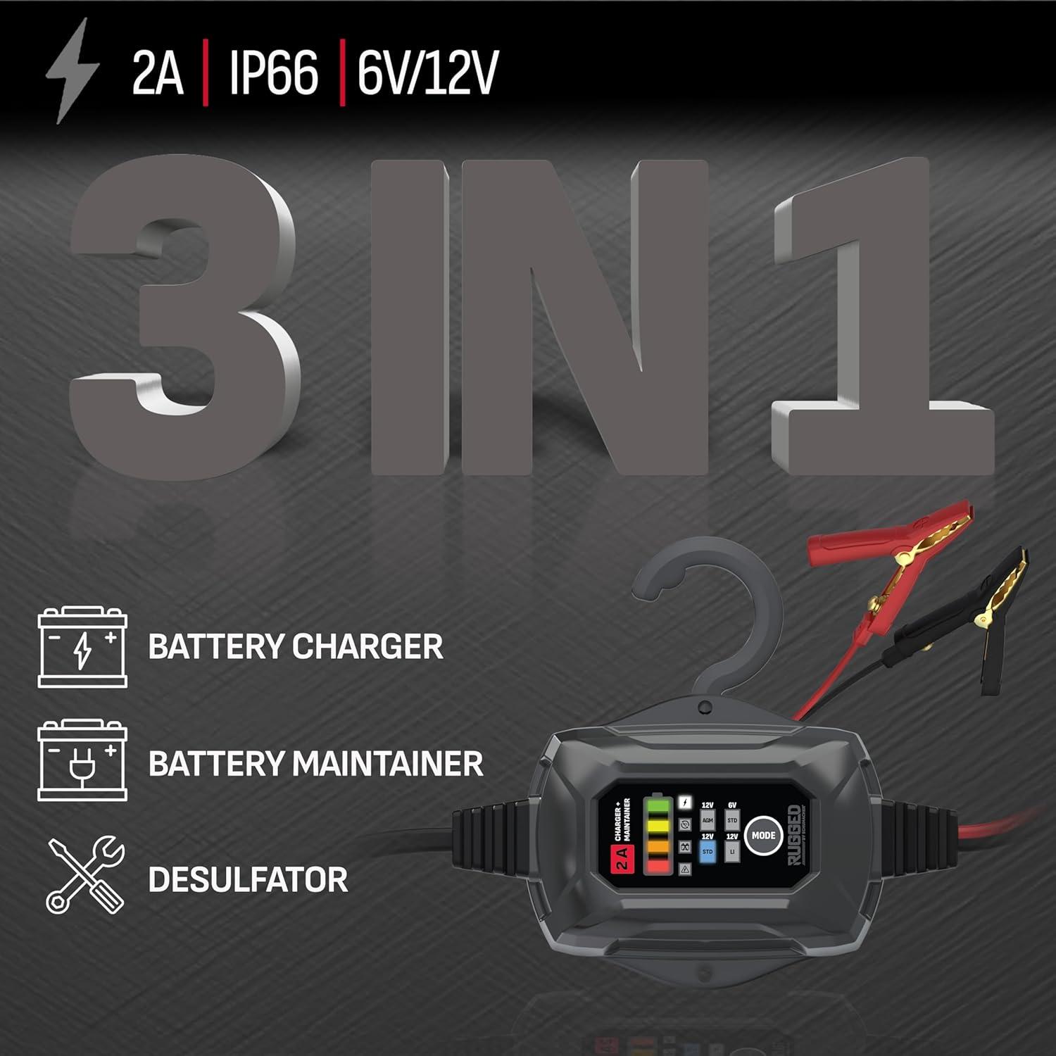 Unleash unstoppable power and total confidence every time with the cutting-edge RUGGED BY SCHUMACHER SC1678 automotive battery charger and maintainer. Specially crafted for car owners, outdoor adventurers, and anyone who needs reliable battery support, this 3-in-1 battery charger, tender, and reconditioner is engineered to deliver maximum power and versatility. With compatibility for 6-volt and 12-volt batteries—including advanced lithium (LiFePO4), standard, AGM, wet cell, gel, deep-cycle, enhanced flooded, maintenance-free, and calcium types—the SC1678 offers a microprocessor-controlled charging and a trickle charge and maintenance mode to keep batteries in peak health, whether vehicles are in use or in storage.