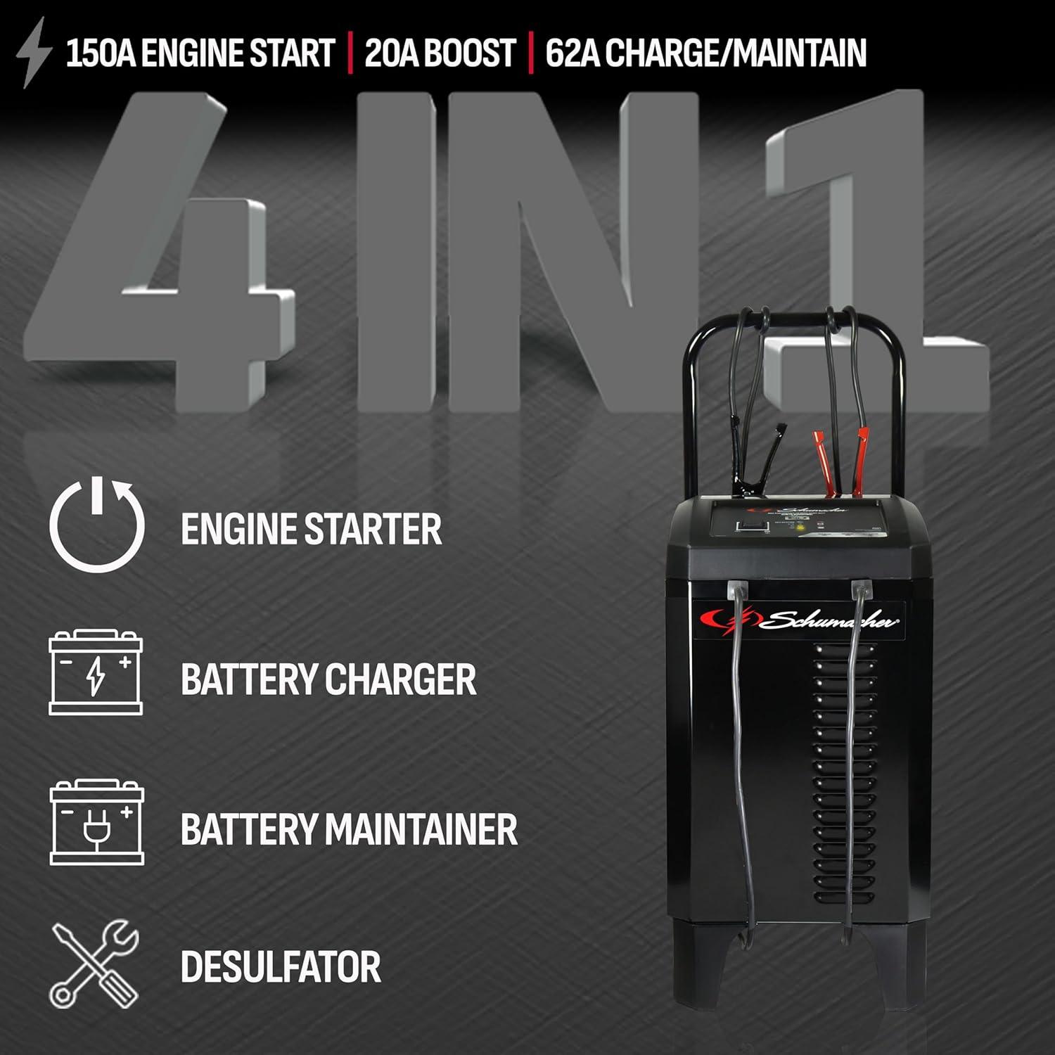 Schumacher Electric Wheeled Automatic 6A Car Battery Charger and 150A Engine Starter, 4-in-1 Solution, Maintainer, 20A Boost, for 12V Automotive and Marine Batteries, SC1364