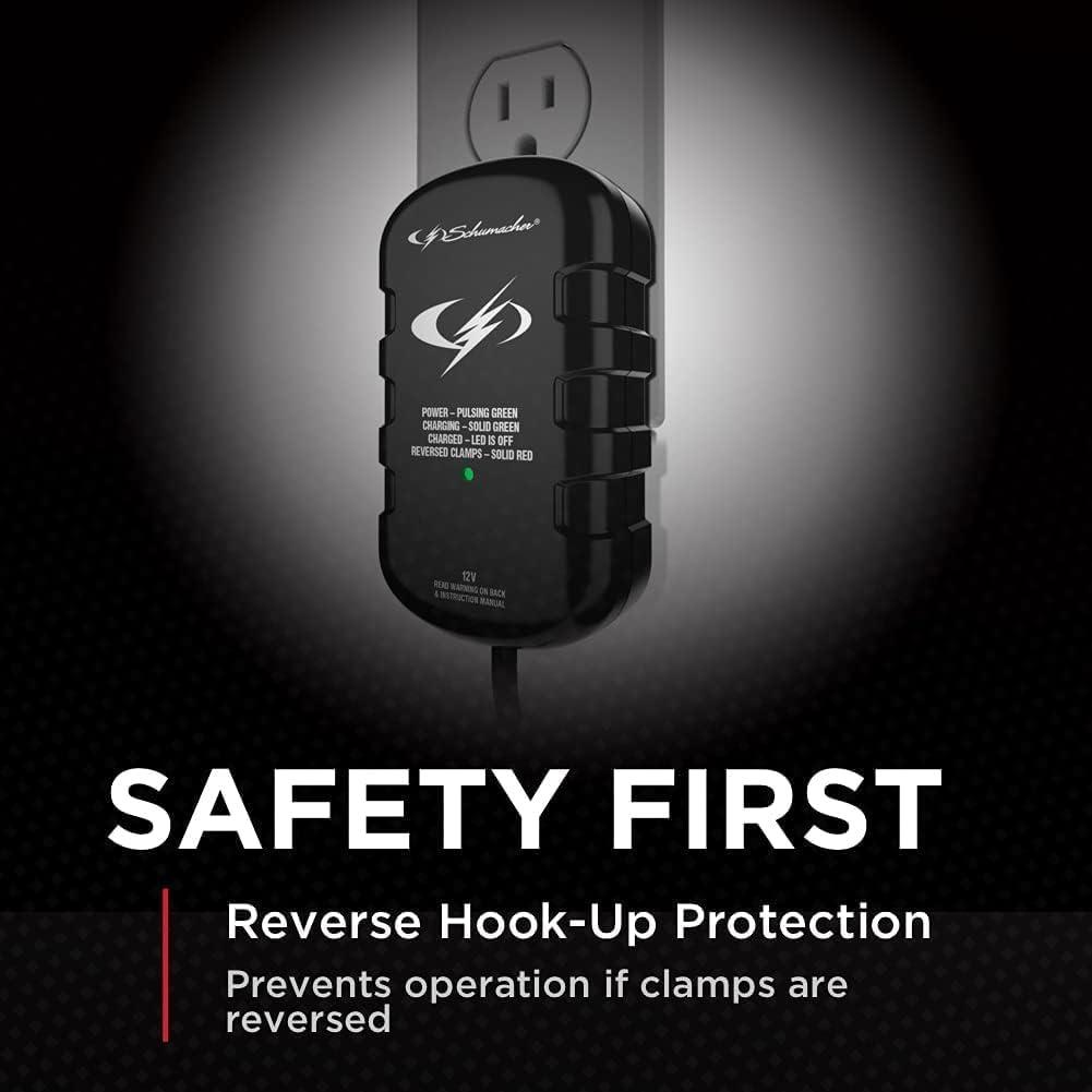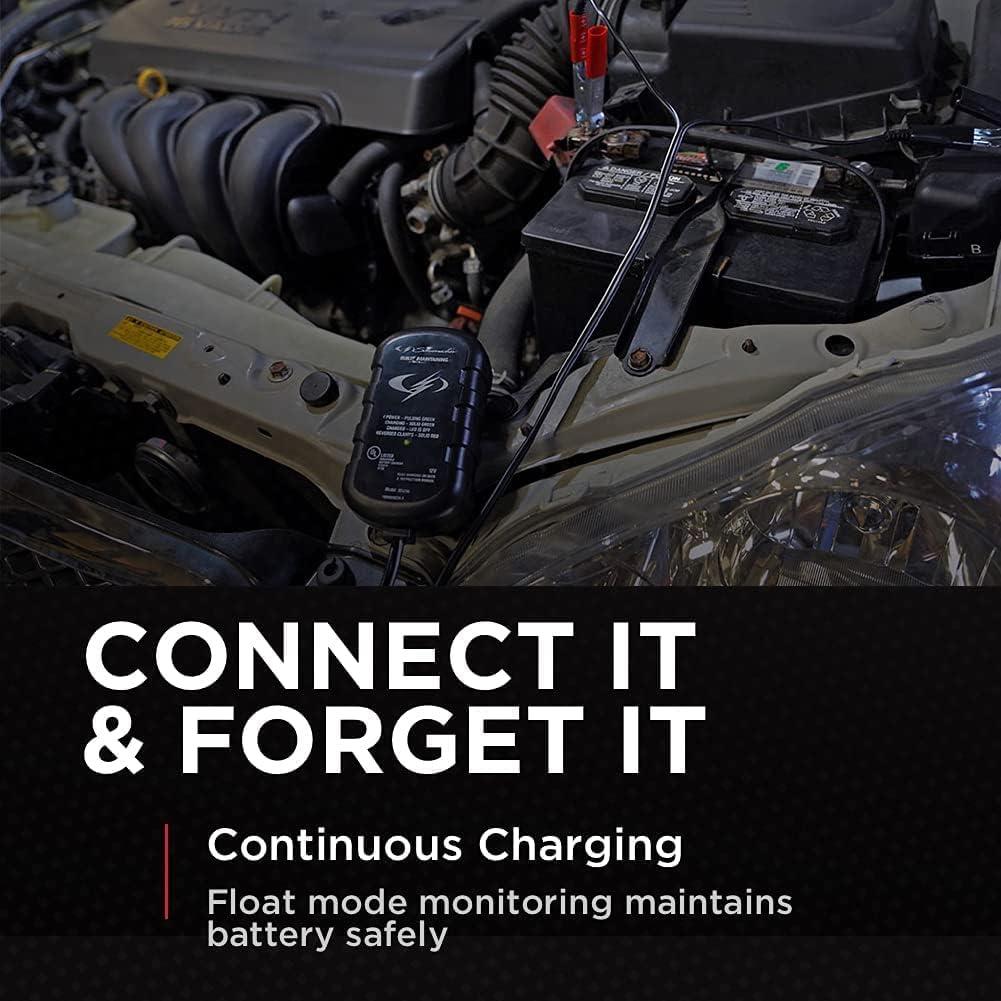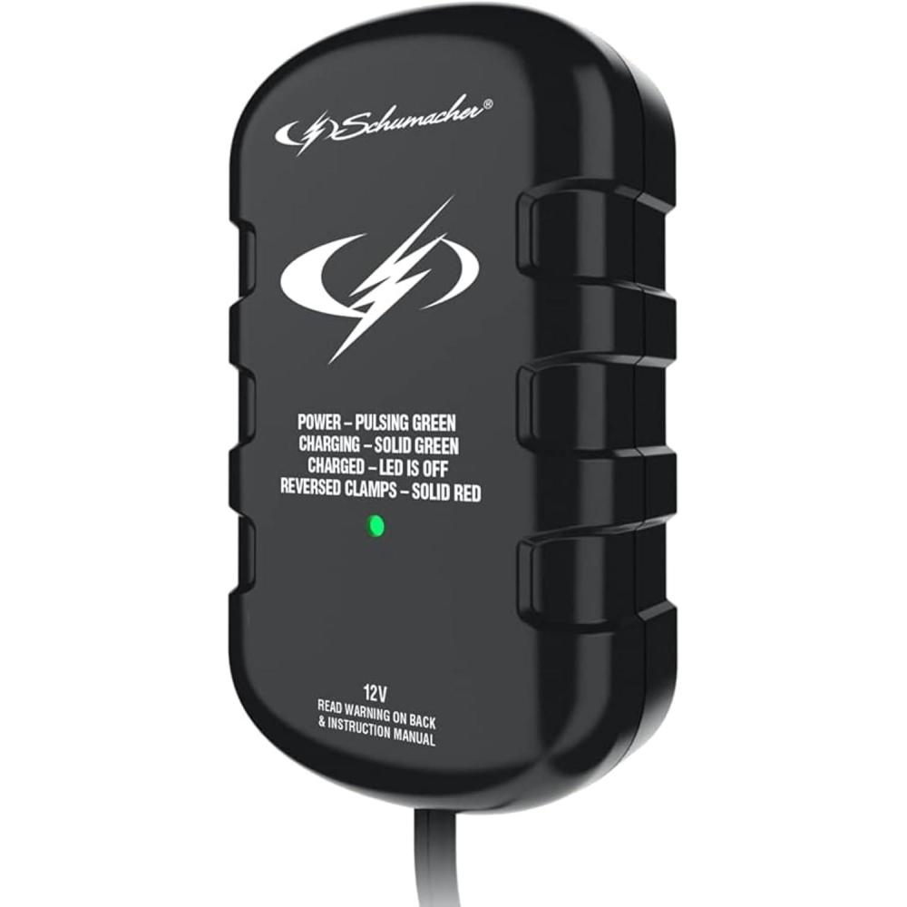 Elevate your vehicle maintenance with the Schumacher SC1278 0.75A 12V Automatic Battery Maintainer, a cutting-edge car battery charger designed to keep your batteries optimally charged and ready for action. Whether you're tending to a 12v lithium battery in a motorcycle, lawn mower, vintage car, ATV, or snowmobile, this microprocessor-controlled auto battery charger ensures your battery's longevity and reliability. Compatible with standard, AGM, gel, and deep-cycle batteries, the SC1278 can even be used to charge an rv battery. It stands out in the world of battery maintainer automotive tools as a versatile solution for a wide array of vehicles including marine applications. Unlike standard jump starters & battery chargers, this maintainer uses an advanced multi-stage charging process to adjust the amperage rate to charge and maintain effectively, preventing overcharging with its float-mode monitoring. The Schumacher SC1278 isn't just about functionality it's engineered for ease of use and safety. With an intuitive LED display for immediate charging status updates and reverse hook-up protection to prevent damage from incorrect clamping, maintaining your car batteries has never been simpler or safer. Unlike traditional car chargers, this battery charger maintainer is specifically designed for those seeking a hassle-free way to extend the life of their car auto battery without constant oversight. Rated for 300 CCA and adhering to the highest industry standards for energy efficiency, the SC1278 maintainer comes with a one-year warranty, ensuring peace of mind alongside superior performance. Make the smart choice for your battery maintenance needs with Schumacher's trusted technology.