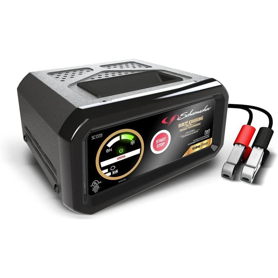 This versatile automotive battery charger and battery tender is designed for maximum performance when it comes to charging and maintaining your car battery. Featuring smart trickle charge technology, the charger ensures your 12-volt battery always stays at its optimal charge level without risking overcharging. Whether tending to the battery in a car, motorcycle, truck, ATV, SUV, or marine vehicle, this advanced charger delivers reliable power. The charger’s multi-stage algorithm automatically adjusts to meet the needs of standard and AGM batteries, providing max charging efficiency and extending battery life. Engineered with robust safety features, including reverse polarity protection, the charger is perfect for anyone who needs a dependable automotive battery charger. With its 6-foot AC power cord and booster cables, this unit is always ready to deliver power when your volt levels drop. The SC1339 is the ultimate choice for those who want a top-notch automotive battery charger and maintainer, designed to keep your battery charged and ready for every drive.